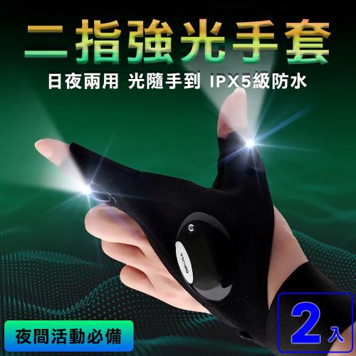 【灰熊厲害】LED手電筒強光釣魚手套/自行車燈手套(2入)
