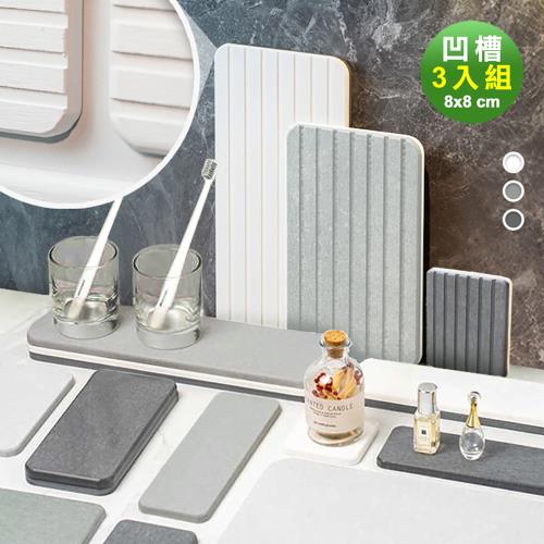 【Reddot 紅點生活】防潮吸水素雅硅藻洗漱杯墊-凹槽8x8cm-超值三入組