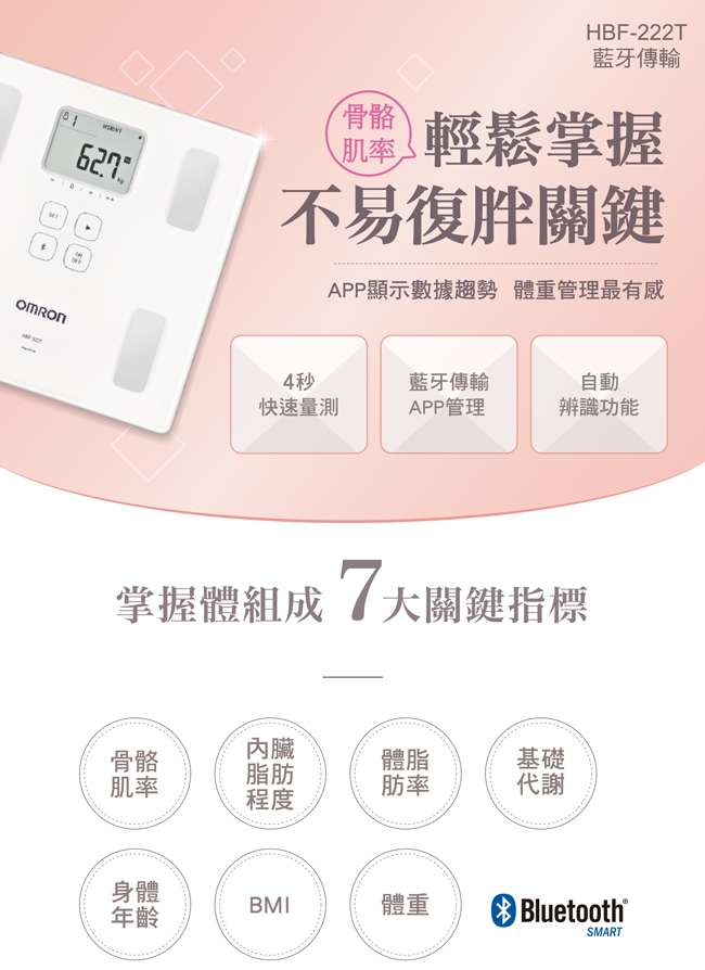 OMRON歐姆龍藍牙傳輸體重體脂計HBF-222T白色