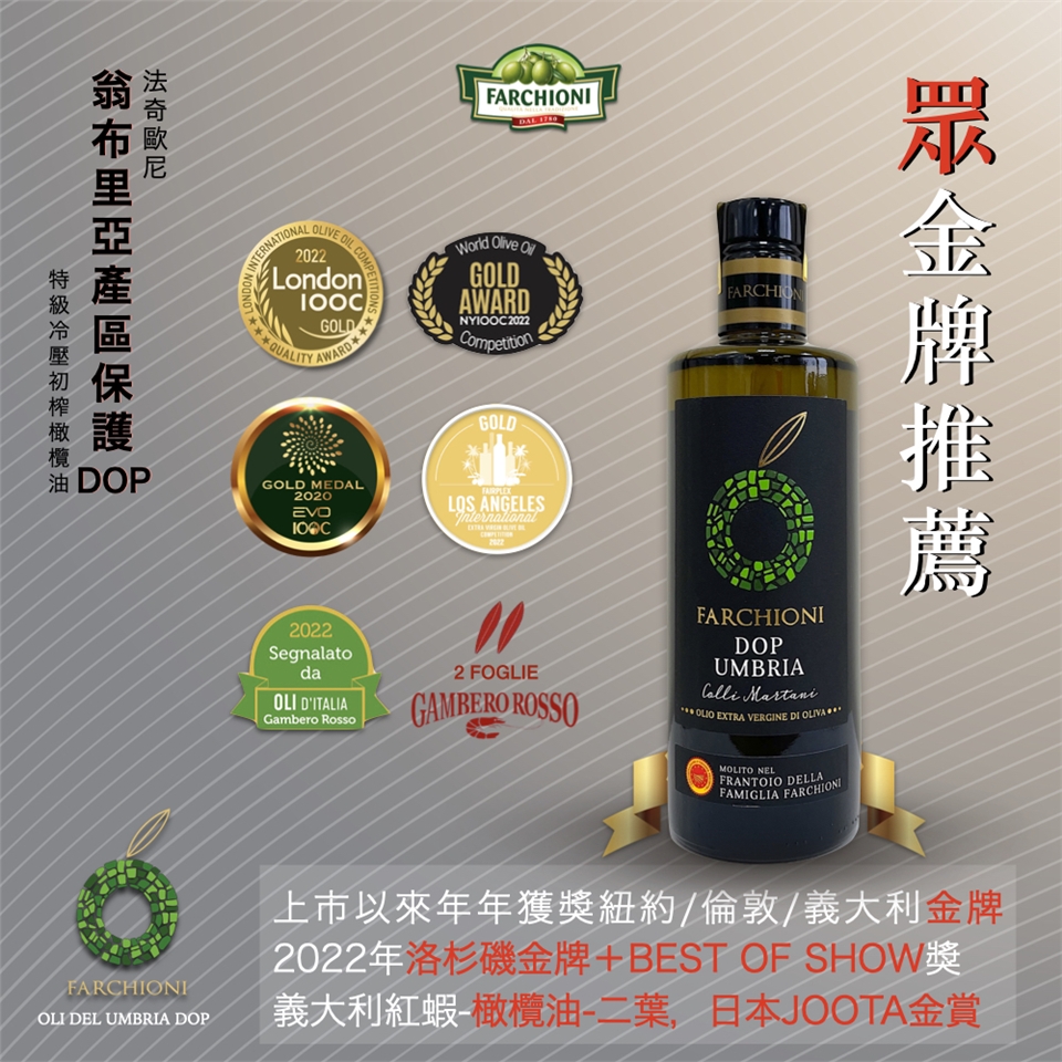 紐約/倫敦/義大利/洛杉磯4大國際橄欖油金牌/義大利紅蝦2葉/日本JOOTA金賞/杜拜金牌