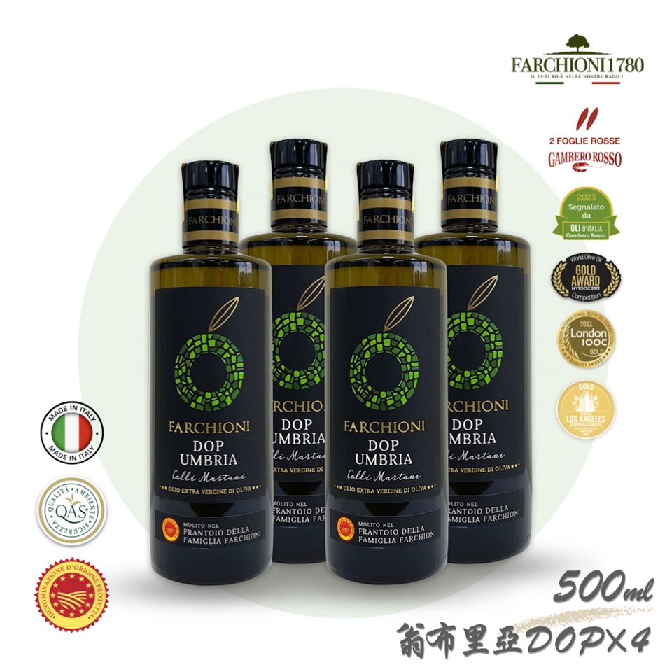 翁布里亞DOP認證 特級冷壓初榨橄欖油500mlX4入