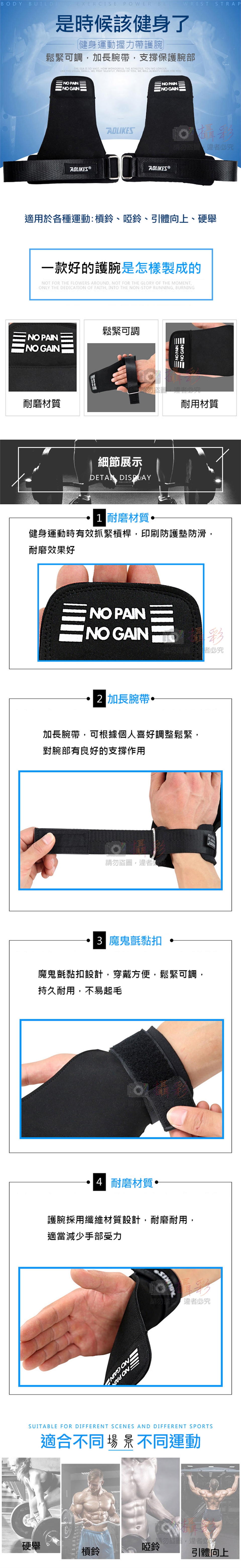使用方法:將手伸過手腕帶,調整鬆緊後黏上,握力帶置於掌心,依照不同訓練握住槓鈴或啞鈴等器材