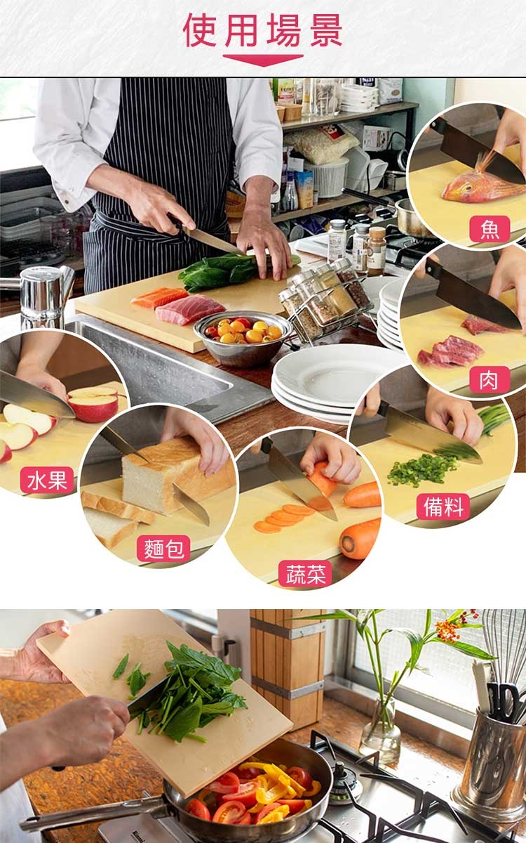 14.使用過程盡量避免集中同一處切食材,保持正反兩面全體均衡使用,從而降低綜合負荷,達到緩解砧板的壓力。