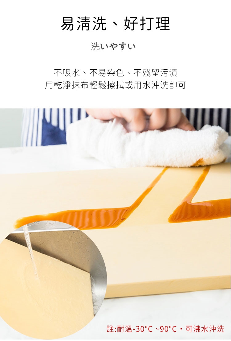 12.若出有明顯污漬時,可用廚房專用漂白劑清洗,詰勿將砧板浸入漂白劑中。