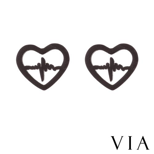 【VIA】符號系列 心跳頻率縷空愛心線條造型白鋼耳釘 造型耳釘 黑色