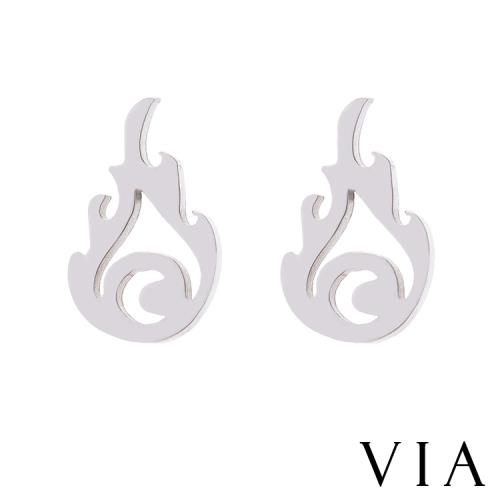 【VIA】個性系列 火焰縷空造型白鋼耳釘 造型耳釘 鋼色