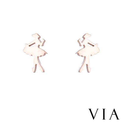 【VIA】時尚系列 芭蕾舞女孩造型白鋼耳釘 造型耳釘 玫瑰金色