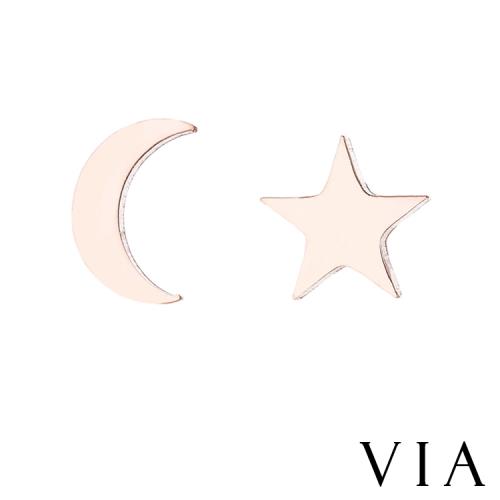 【VIA】星空系列 星星月亮不對稱造型白鋼耳釘 造型耳釘玫瑰金色