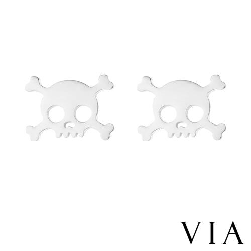 【VIA】個性系列 時尚骷髏頭造型白鋼耳釘 造型耳釘 鋼色