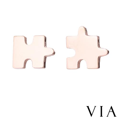 【VIA】時尚系列 迷你幾何拼圖造型白鋼耳釘 造型耳釘 玫瑰金色
