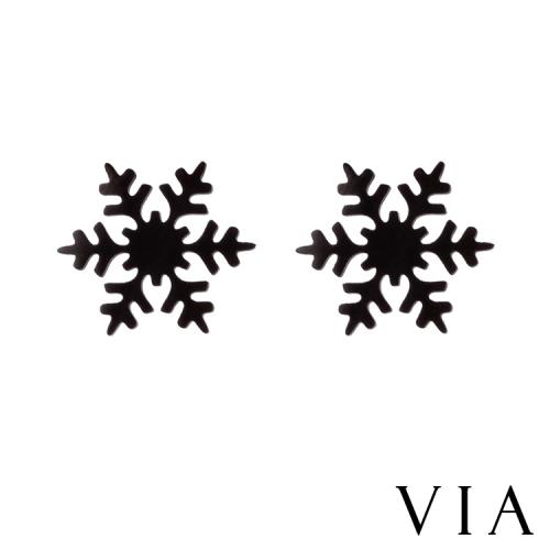 【VIA】節日系列 聖誕節雪花造型白鋼耳釘 造型耳釘黑色