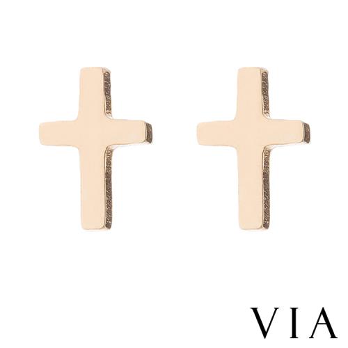 【VIA】符號系列 經典十字架造型白鋼耳釘 造型耳釘金色