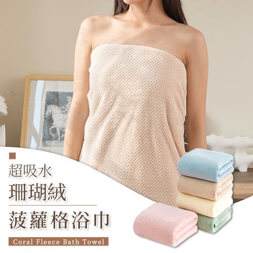 【優思居】超吸水珊瑚絨菠蘿格浴巾 大呎寸吸水浴巾 大毛巾 吸水毛巾