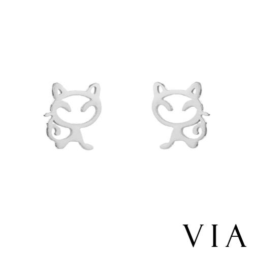 【VIA】動物系列 俏皮貓咪造型白鋼耳釘 造型耳釘 鋼色