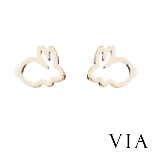 【VIA】動物系列 可愛小兔線條造型白鋼耳釘 造型耳釘金色
