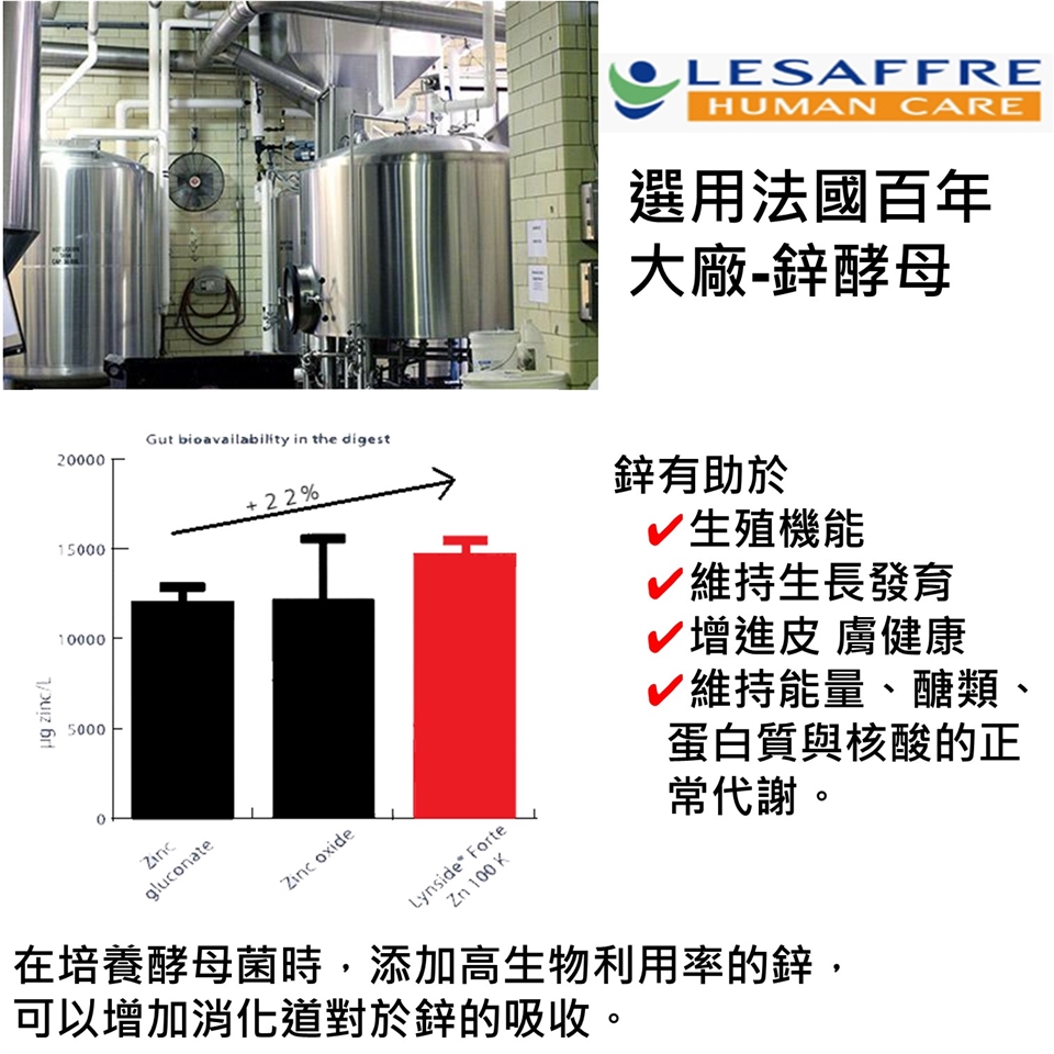 ★鋅酵母:嚴選法國百年大廠LESAFFRE鋅酵母,天然醱酵,高吸收率