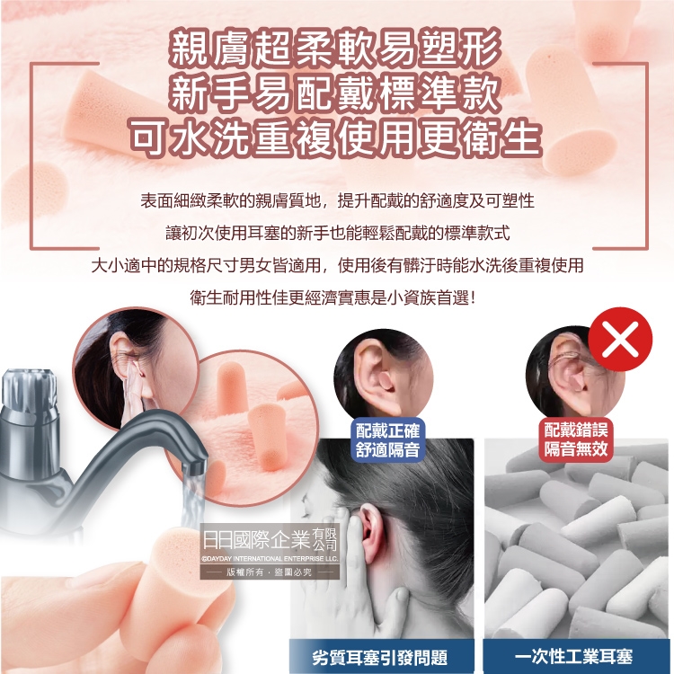 ●品名:頂級柔軟泡棉慢回彈可水洗降噪隔音耳塞-SOFT膚色款