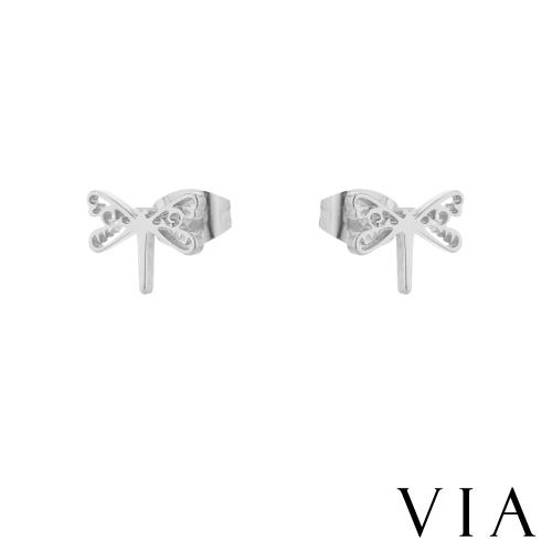 【VIA】昆蟲系列 縷空精緻蜻蜓造型白鋼耳釘 造型耳釘 鋼色