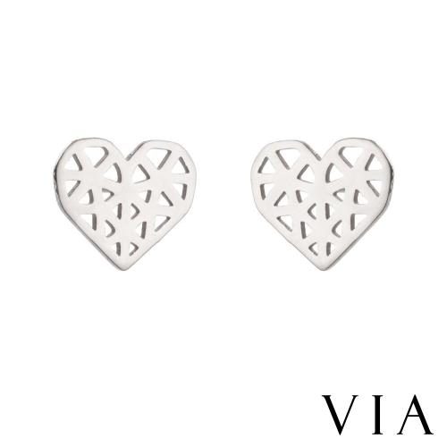 【VIA】時尚系列 縷空線條個性愛心造型白鋼耳釘 造型耳釘 鋼色
