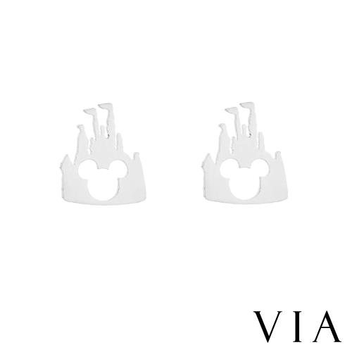【VIA】時尚系列 縷空城堡造型白鋼耳釘 造型耳釘 鋼色