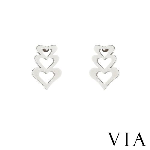 【VIA】符號系列 心串心造型白鋼耳釘 造型耳釘 鋼色