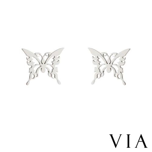【VIA】昆蟲系列 縷空花蝴蝶造型白鋼耳釘 造型耳釘 鋼色