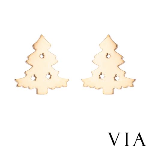 【VIA】節日系列 可愛聖誕樹造型白鋼耳釘 造型耳釘 金色