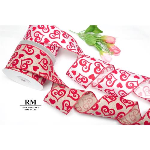 特惠套組純樸的愛心拷克緞帶套組-63MM(2-1/2英吋寬、含鐵絲)/印刷系列/紅色/情人節/婚禮/白色/自然色