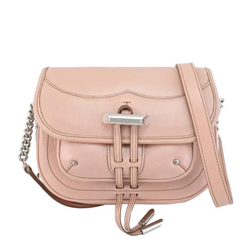 TODS 金屬釦環質感油蠟小牛皮翻蓋小馬鞍包.粉