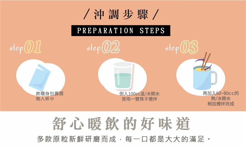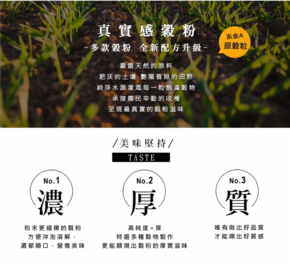 ※ 本產品無添加消泡劑與抗結塊劑,易有結塊,因是熟粉不影響品質與風味,敬請安心食用!