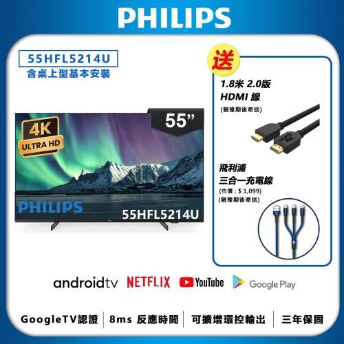 Philips 飛利浦 55吋 4K Android 智慧聯網液晶顯示器 55HFL5214U (含基本安裝)