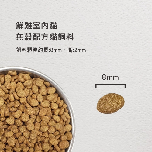 新鮮雞肉 (18%), 新鮮火雞肉 (7%), 新鮮巢蛋 (5%), 新鮮完整鯡魚 (4%), 新鮮雞肝 (5%),新鮮完整比目魚 (4%), 新鮮火雞肝 (4%), 新鮮雞心 (4%), 新鮮火雞心 (4%), 新鮮雞脖子 (4%),脫水雞肉 (4%), 脫水火雞肉 (4%), 脫水完整鯖魚 (4%), 脫水完整沙丁魚 (4%), 脫水完整鯡魚 (4%),脫水雞肉脂肪 (3%), 完整紅扁豆, 完整綠碗豆, 完整綠扁豆, 完整鷹嘴豆, 完整黃碗豆, 扁豆纖維, 完整花豆, 完整白腰豆, 脫水雞軟骨 (1%), 鯡魚油 (1%), 冷凍乾燥雞肝, 冷凍乾燥火雞肝, 新鮮完整南瓜, 新鮮完整冬南瓜, 新鮮完整西葫蘆, 新鮮完整防風草, 新鮮胡蘿蔔, 新鮮完整五爪紅蘋果, 新鮮完整巴特利梨, 新鮮甘藍, 新鮮菠菜, 新鮮甜菜葉, 新鮮蘿蔔葉, 棕海帶, 完整蔓越莓, 完整藍莓, 完整康棣莓, 菊苣根, 薑黃根, 水飛薊, 牛蒡根, 薰衣草, 蜀葵根, 玫瑰果