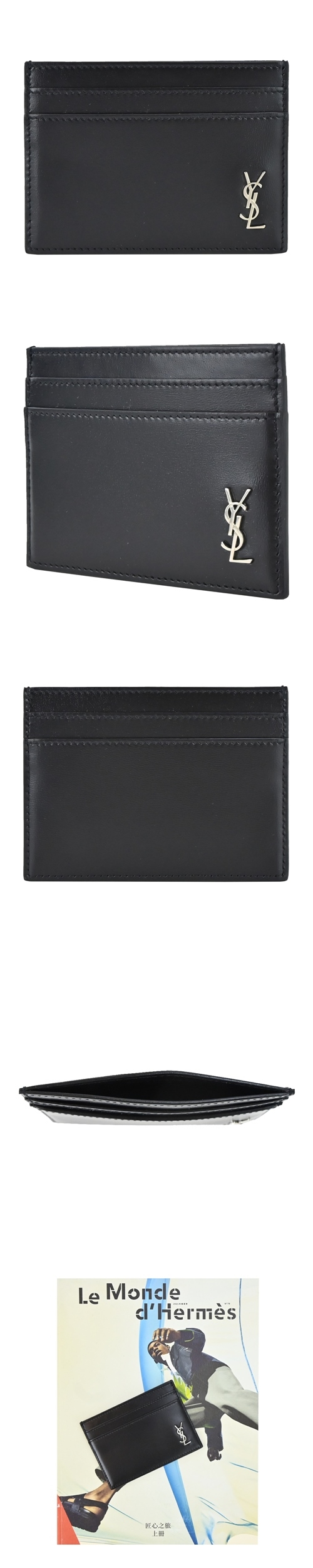 YSL素面牛皮LOGO名卡夾(黑/銀)