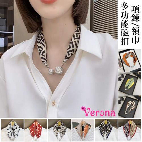 【Verona】設計師款多功能百搭鑲鑽磁扣絲巾項鍊頭巾髮飾手巾(多款可選)