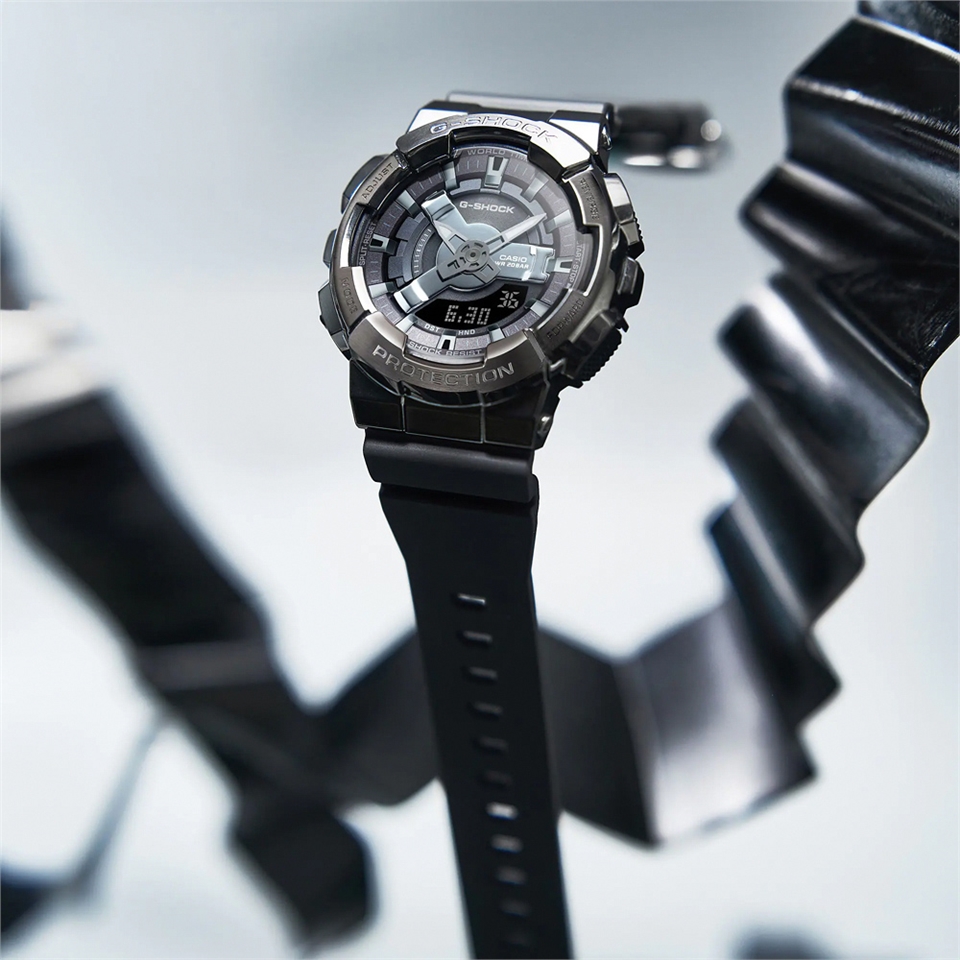 G-SHOCK備受歡迎的GM-110指針數位雙顯系列錶款,搭配結實可靠的金屬外殼,推出更纖薄、更精巧的構造設計