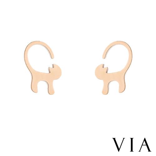 【VIA】動物系列 頑皮貓咪造型白鋼耳釘 造型耳釘 玫瑰金色