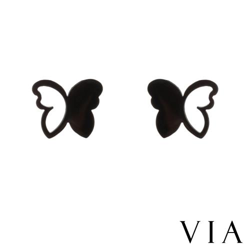 【VIA】昆蟲系列 縷空意象蝴蝶造型白鋼耳釘 造型耳釘 黑色