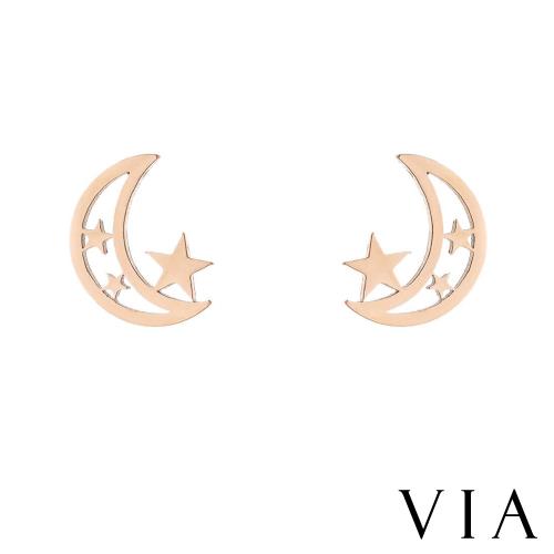 【VIA】星空系列 月亮星星縷空線條造型白鋼耳釘 造型耳釘 玫瑰金色