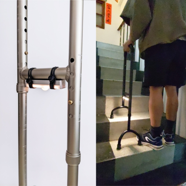 - 穩定助步:使用者四肢肌力或是平衡感較差適用四點側邊一同落下支撐長輩體重,以穩定輔助步伐。
