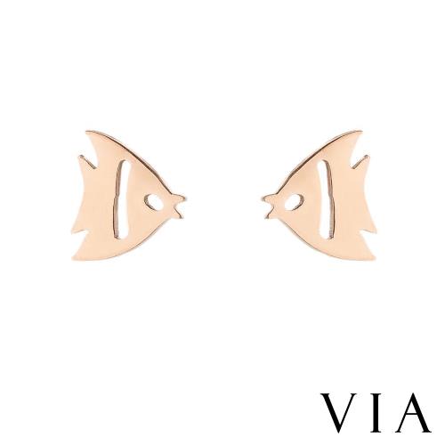 【VIA】海洋系列 熱帶魚造型白鋼耳釘 造型耳釘 玫瑰金色