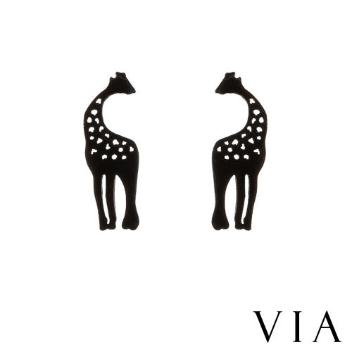 【VIA】動物系列 長頸鹿造型白鋼耳釘 造型耳釘黑色
