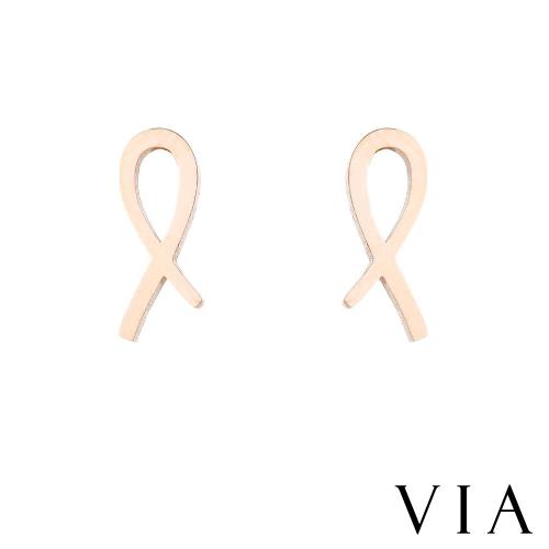 【VIA】海洋系列 魚形交叉線條造型白鋼耳釘 造型耳釘玫瑰金色