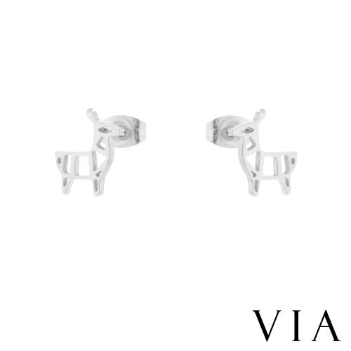 【VIA】動物系列 可愛草泥馬造型白鋼耳釘 造型耳釘鋼色