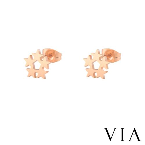 【VIA】星空系列 五角星星環圈造型白鋼耳釘 造型耳釘玫瑰金色