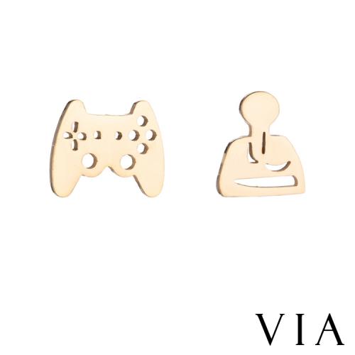 【VIA】個性系列 電動搖桿不對稱造型白鋼耳釘 造型耳釘金色