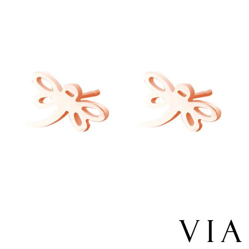 【VIA】昆蟲系列 飛舞小蜻蜓造型白鋼耳釘 造型耳釘玫瑰金色