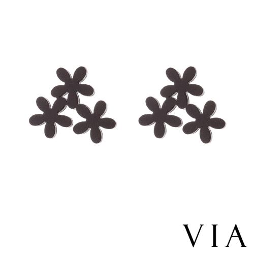 【VIA】植物系列 三朵小花造型白鋼耳釘 造型耳釘 黑色