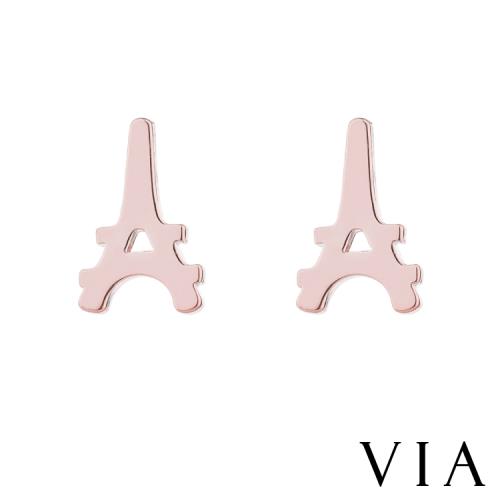 【VIA】時尚系列 巴黎鐵塔造型白鋼耳釘 造型耳釘 玫瑰金色
