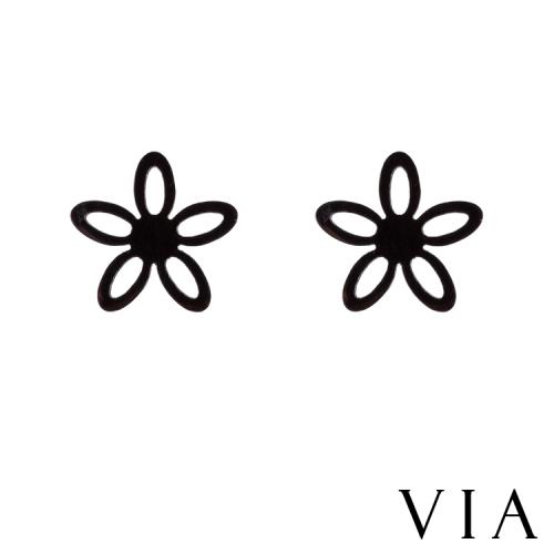 【VIA】植物系列 縷空五瓣花朵造型白鋼耳釘 造型耳釘 黑色