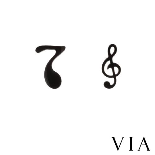 【VIA】符號系列 不對稱音符造型白鋼耳釘 造型耳釘 黑色